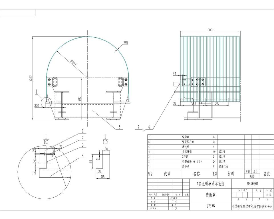 輸送機(jī)防雨罩主要技術(shù)參數(shù)